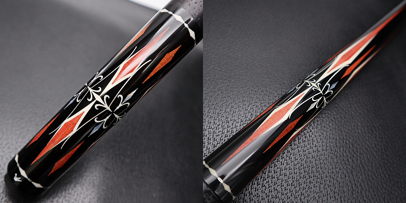 Japanese Custom Cueを代表するメーカーの一つ“HAKU Cue”の大人気シリーズ“FLEUR DE LIS”です♪エボニーベースにピンクアイボリーとFLEUR DE LISのデザインが映え、シルバーとマザーオブパールの輝きが動きのあるアクセントとなっています。