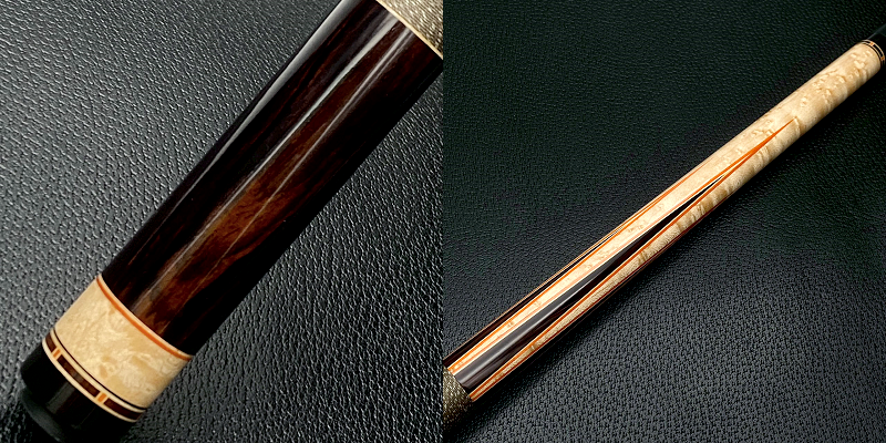1995年にジェリー・フランクリン氏によって制作されたココボロ×バーズアイメイプルの変則6剣Cueです。久々にジェリー・フランクリン氏作品に出会えました!!尊い!!