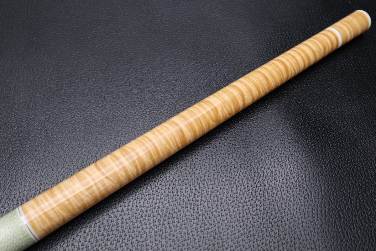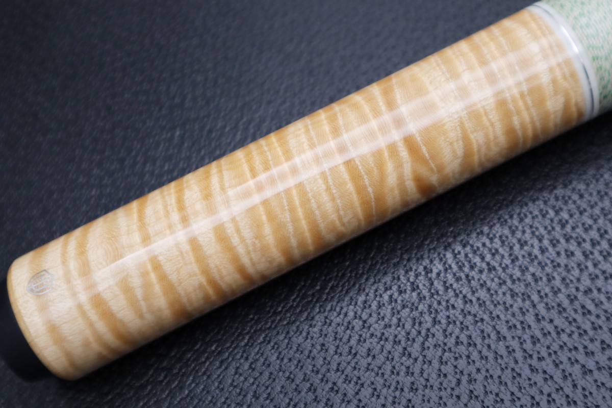 濃淡の味わい深い最高ランクのカーリーメイプルは、バットキャップは付けずロゴを木材に直彫りしているため美しい杢目を余すところなく堪能できます。