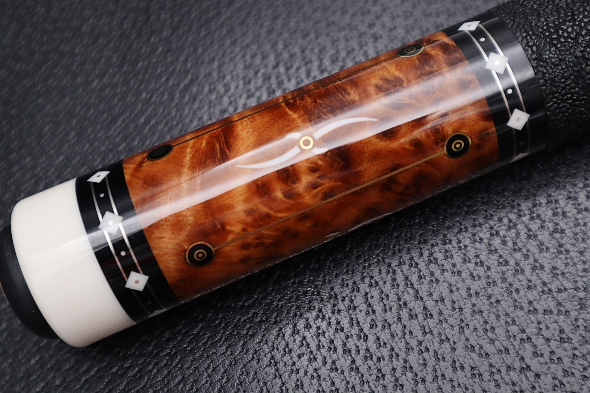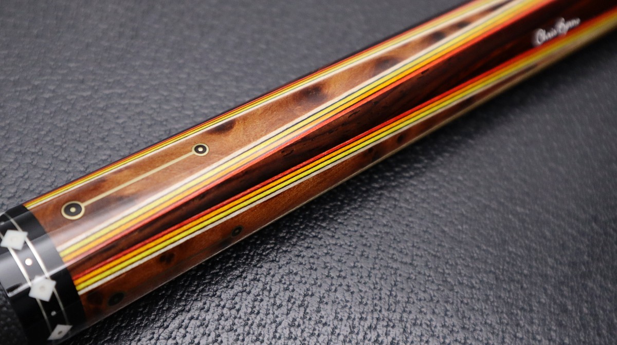Chris氏の制作するキューの多くはトラディショナルなデザインですが、正確で緻密、特に「プレイアビリティ(性能)」を重視しており、Custom Cue愛好家たちの間で非常に高く評価されています。