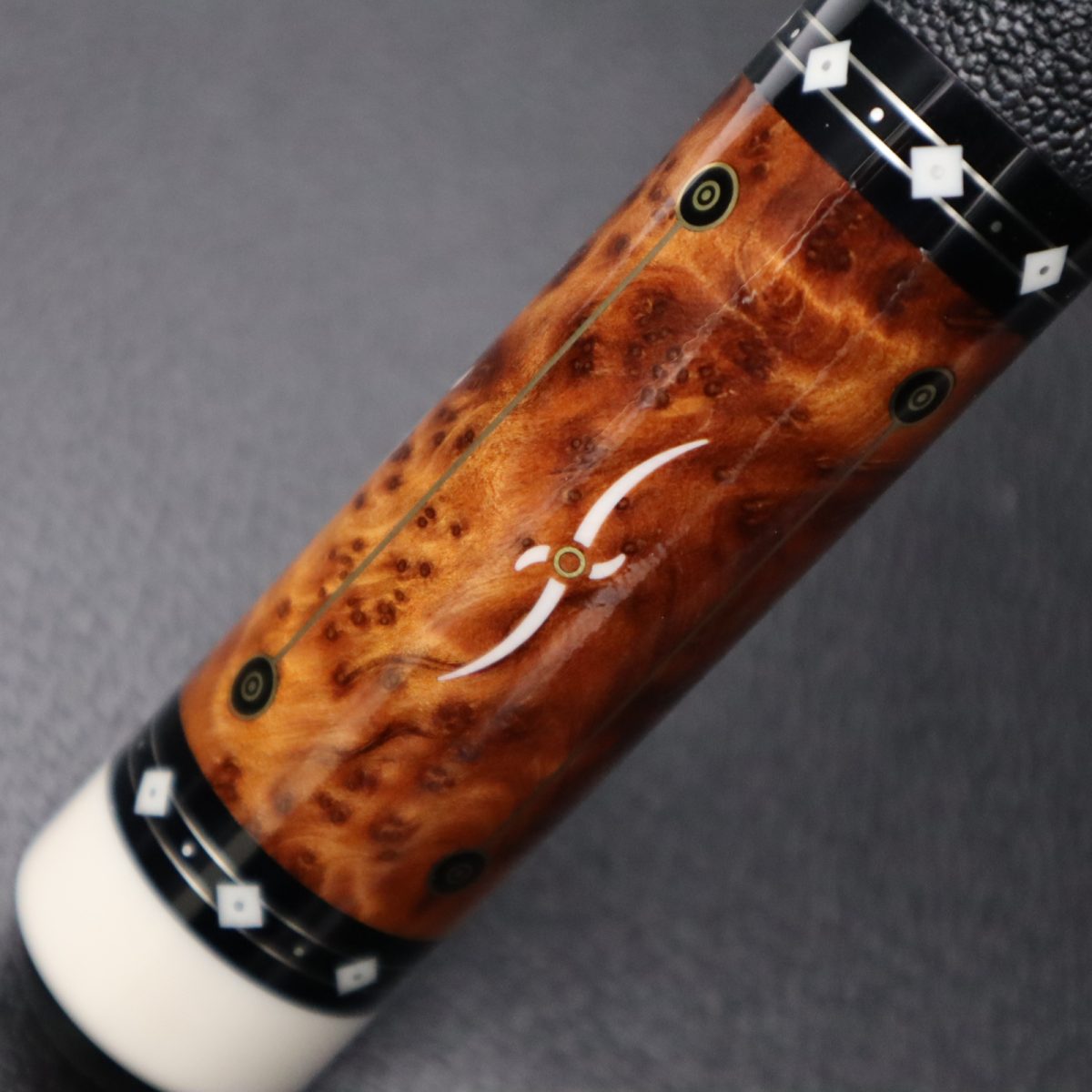Chris氏の制作するキューの多くはトラディショナルなデザインですが、正確で緻密、特に「プレイアビリティ(性能)」を重視しており、Custom Cue愛好家たちの間で非常に高く評価されています。