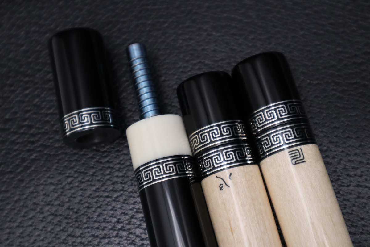 Zen Cueの代名詞とも言える中国の伝統的な紋様「雷文」は、古来より雷光や雷鳴は龍の意思を表すと信じられており、崇められていたそうです。旬な情報となりますが、2026年2月に中国で開催された「中国式9ボール」『DUYA Legendsゴールデンナインマスターズ』でアジアを代表する世界チャンピオンの“柯兄弟”が優勝・準優勝となり、2人で6000万円を超える賞金を手にしたそうです。彼等らが使用していることで、更に入手困難なキューとなる事でしょう。