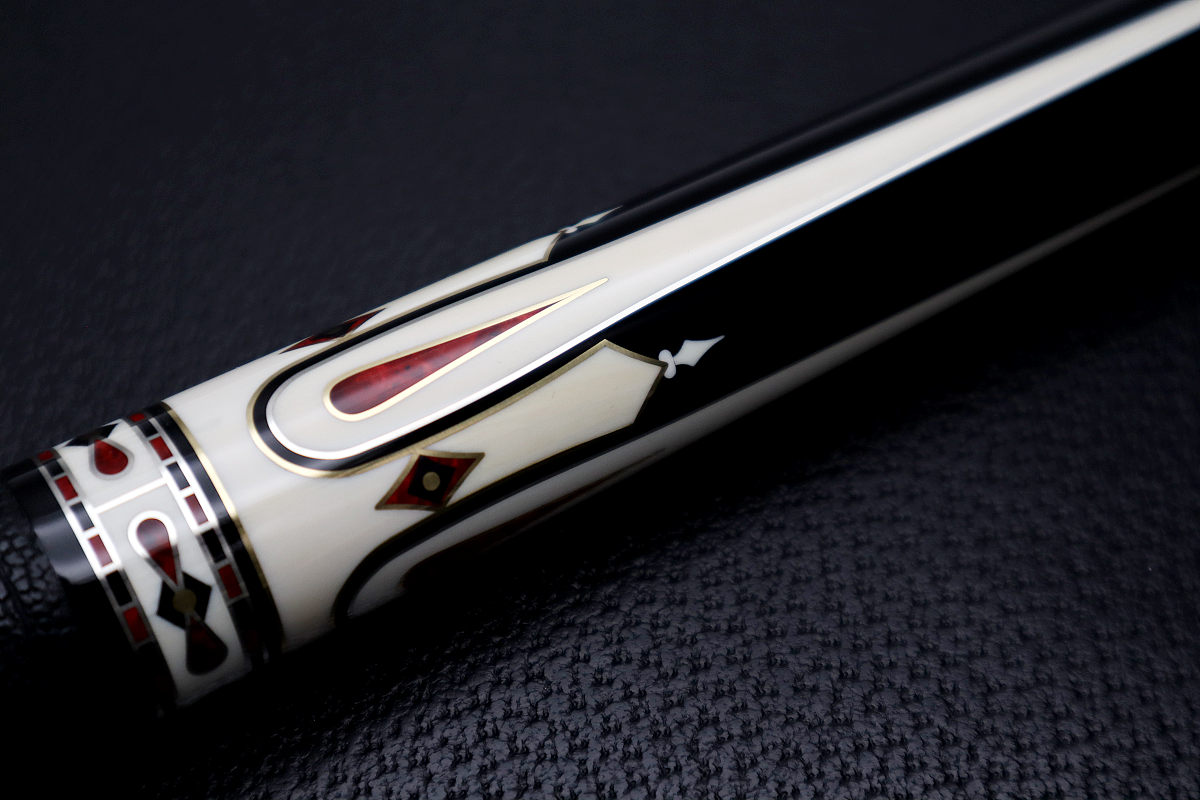 本作品は、『バラブシュカ』や『ザンボッティ』と同時代の老舗カスタムキューメーカーである、巨匠『Gina(アーニー・ギュテレス氏)』 2013年制作の“Gina 50th Anniversary Cue”です。