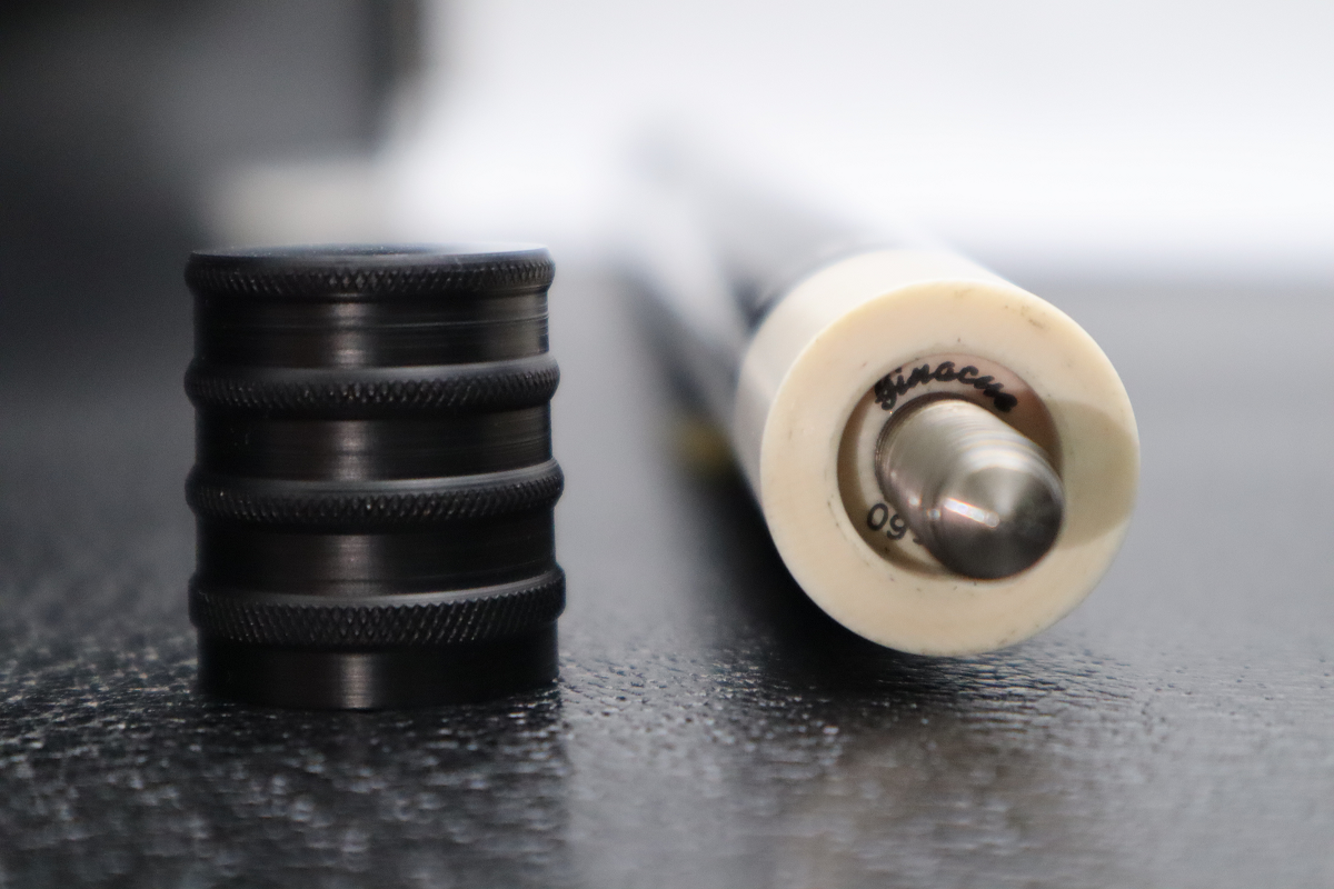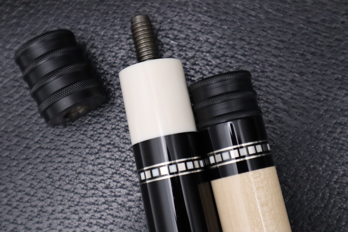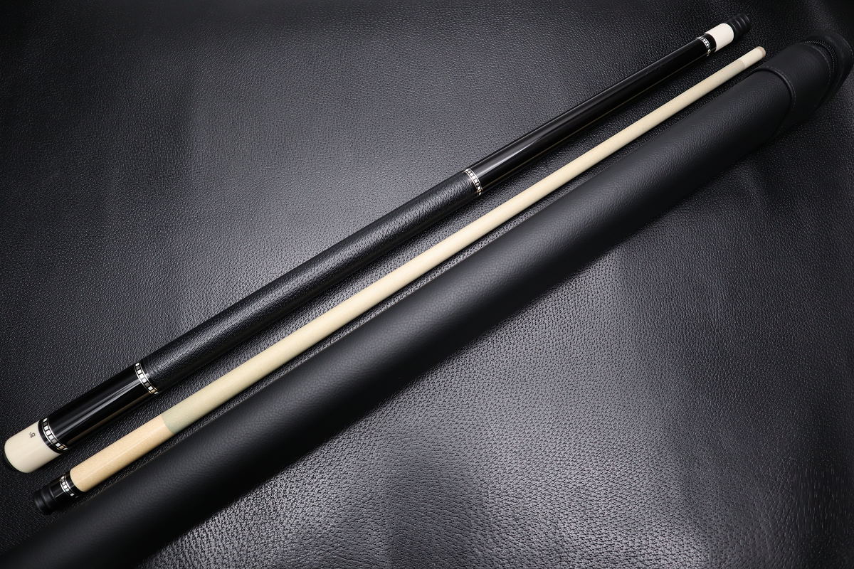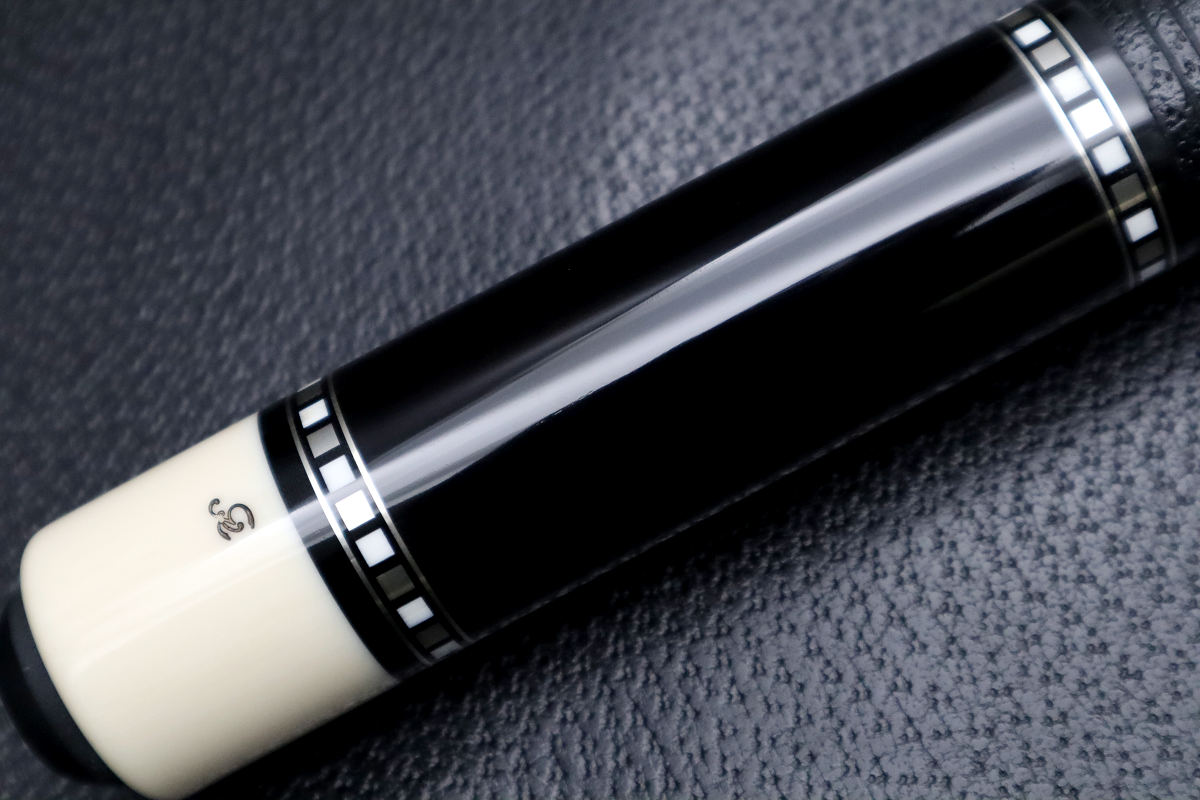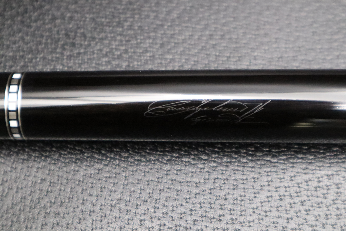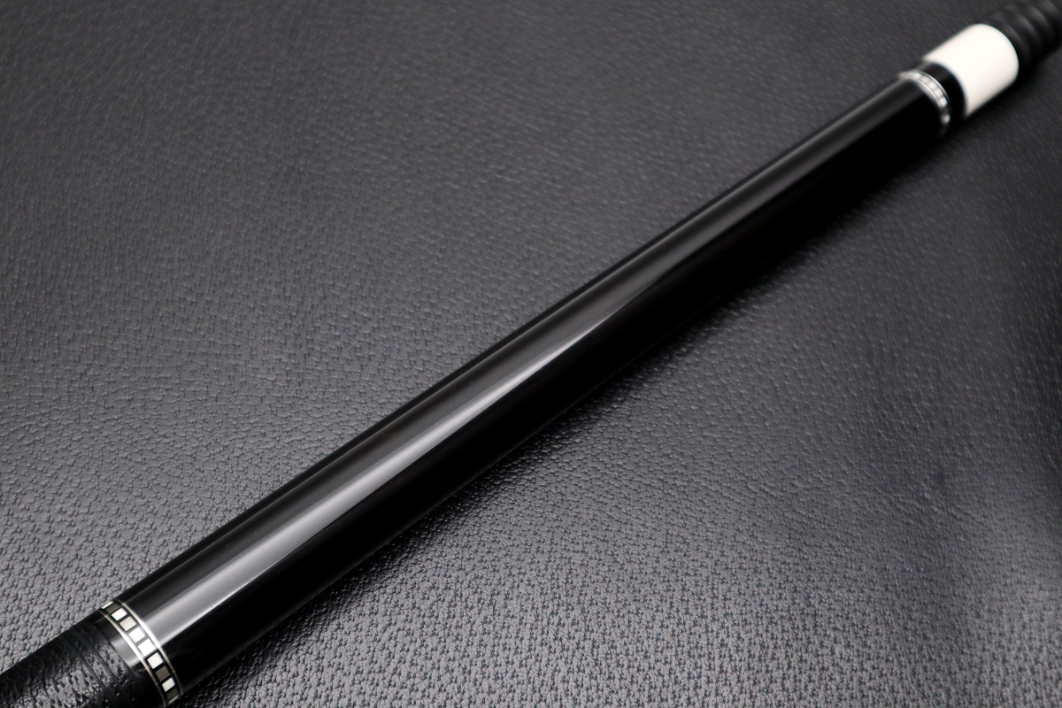 カーボンシャフトを合わせても違和感がないエボニーベースのCue…まさに漆黒に輝くファンシーリングが極上の贅沢だと感じます。