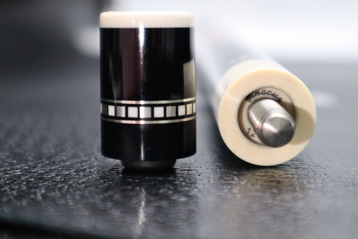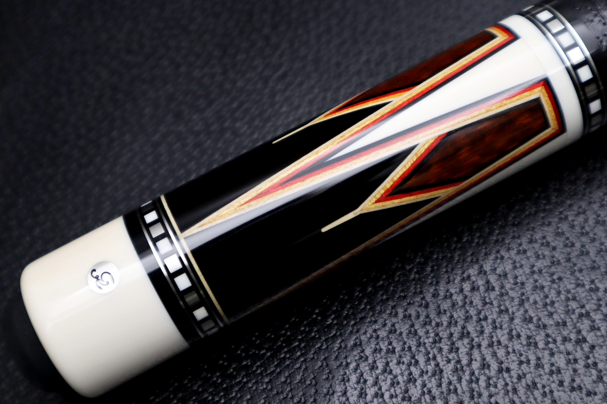 本作品は、『バラブシュカ』や『ザンボッティ』と同時代の老舗カスタムキューメーカーである、巨匠『Gina(アーニー・ギュテレス氏)』 2012年制作の“Gina “spear point(16A)”です。