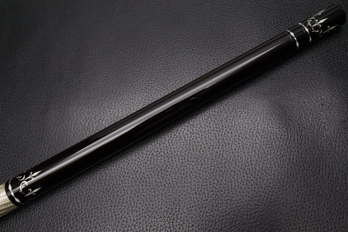 また、ノーマルシャフトでもプレイヤビリティーは高いですが、モノクロトーン基調のキューですので、全体のデザインに違和感なく使用できる、カーボンシャフト(CueTec Cynergy)を当店オリジナルで推奨します。