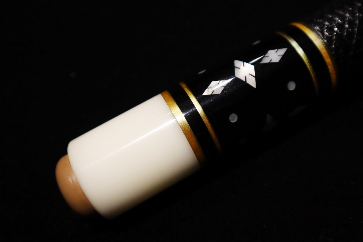 1980年代に入ると、Cueにロゴを入れるようにしました。1988年になると、Tim氏はキューにロゴ印を押すのをやめ、Cueにロゴを彫り始め、次第に制作年号も刻印するようになりました。